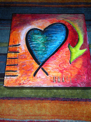 For our substrate, we chose a wood panel (16 x 16 x 3). I slathered on a rich layer of Golden's Molding Paste, drew in a heart, left the studio, and sent Destree a text message telling her it had begun.