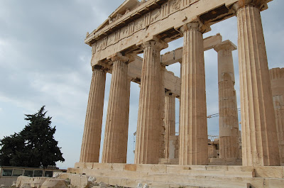 It was announced on Monday evening that the chancellor of Germany would be visiting Athens on Tuesday causing strikes, demonstrations, and general mayhem in the city center. Therefore, all excursions into the city center were being cancelled and/or modified. We scrambled to change our planned excursion. We were still able to visit the Acropolis and Parthenon, but weren't able to visit the two museums we had hoped to see as they were located in the heart of the city. Our tour guide took us into the city in the morning, before the planned demonstrations were set to begin.
